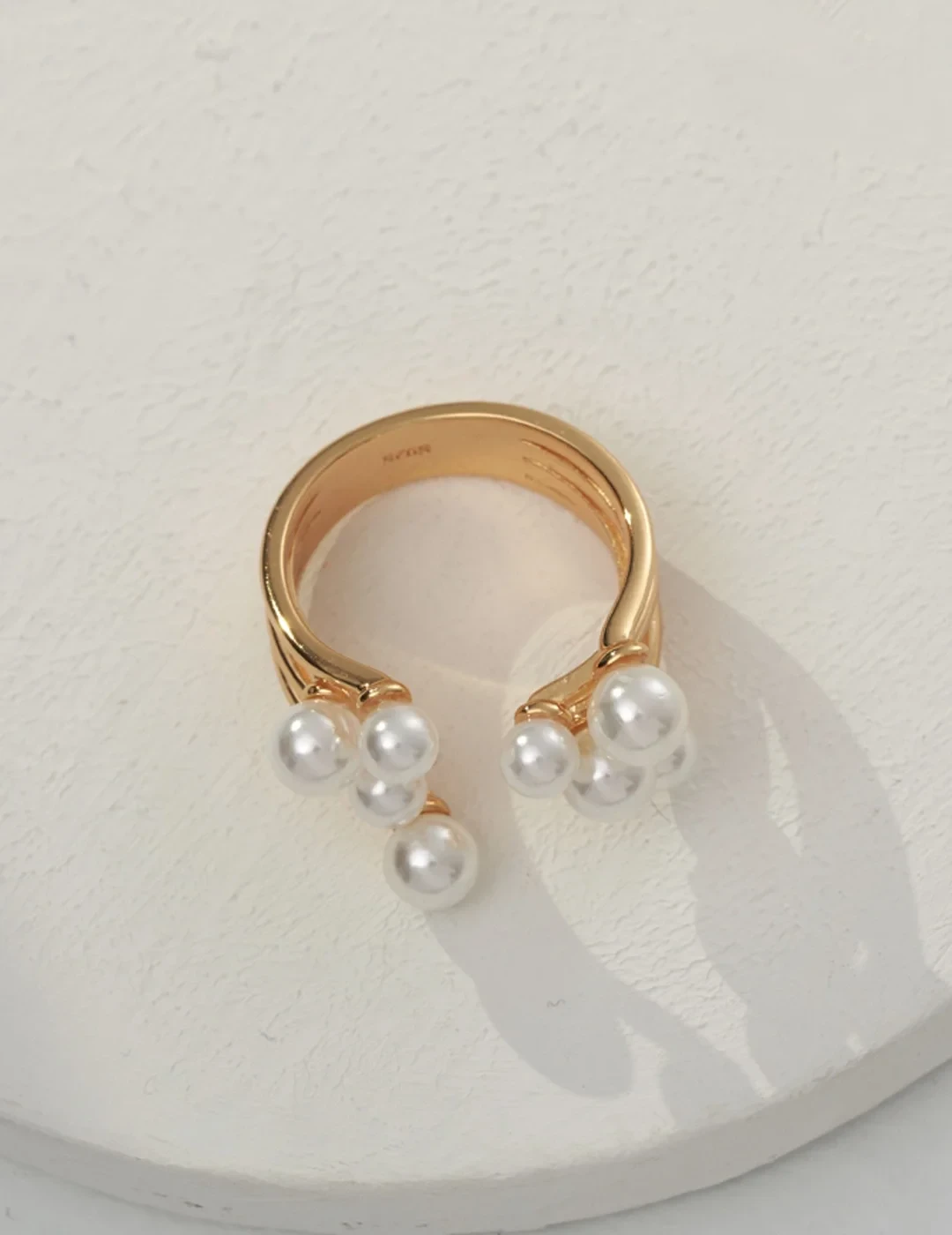In a tender embrace of gold, luminous pearls gather like dewdrops upon a nascent bud. A symbol of spring’s gentle awakening, this ring evokes the quiet beauty of new beginnings. Its delicate form whispers of hope and renewal, a reminder of the endless cycle of life and the promise of beauty yet to unfold.